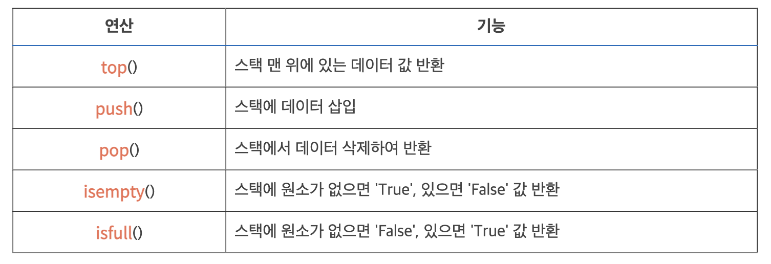 - 공백 스택(empty stack) : 공백 상태의 스택